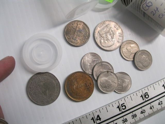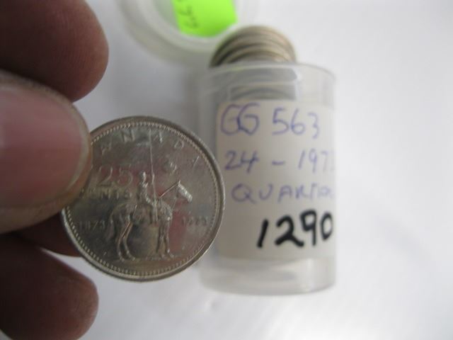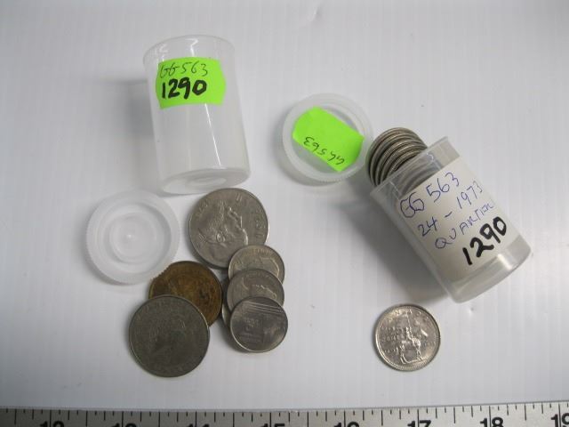 1 CONTAINER OF 24 CANADIAN QUARTERS & 1 CONTAINER OF FOREIGN COINS