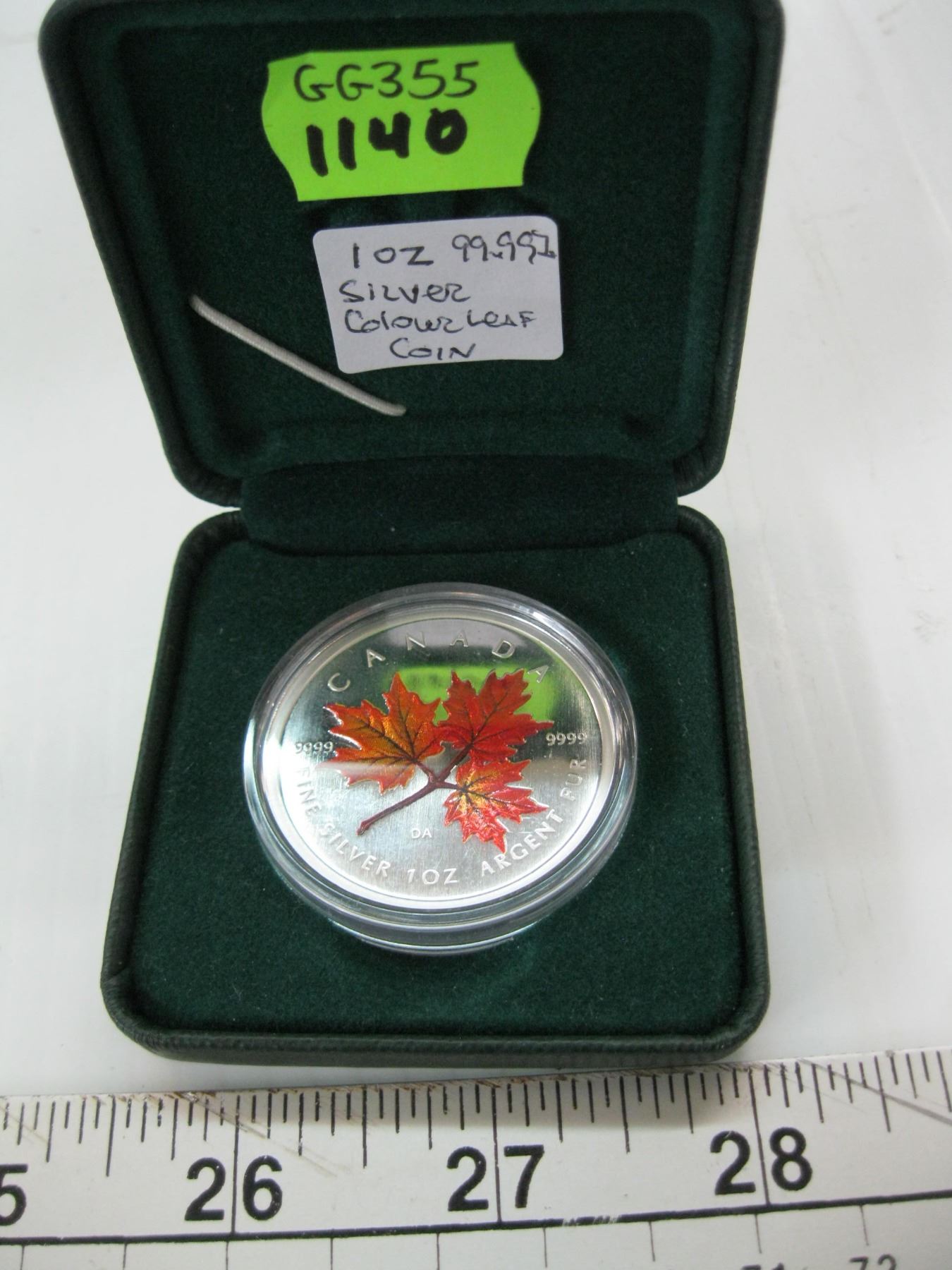 1 OZ. CDN SILVER (99.9%) COLOUR LEAF COIN - TAX EXEMPT