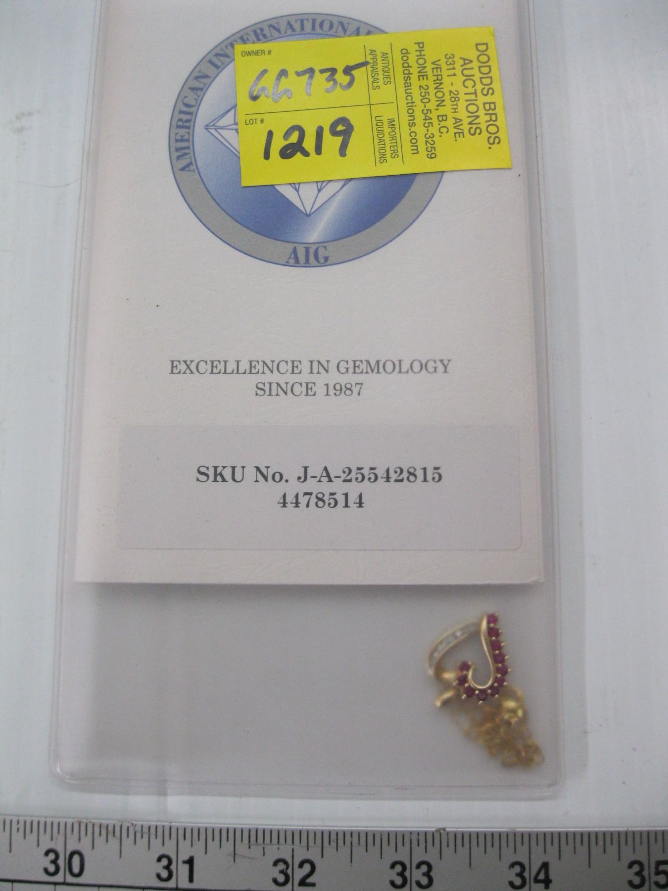 14K YELLOW GOLD LADIES CAST & ASSEMBLED RUBY & DIAMOND PENDANT W/CHAIN W/APPRAISAL OF $1,010 US, JAN 2008