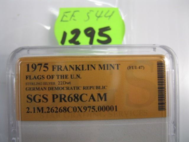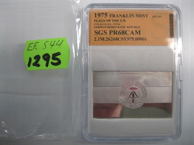1975 FRANKLIN MINT FLAGS OF THE UN, STERLING SILVER BAR (22DWT)