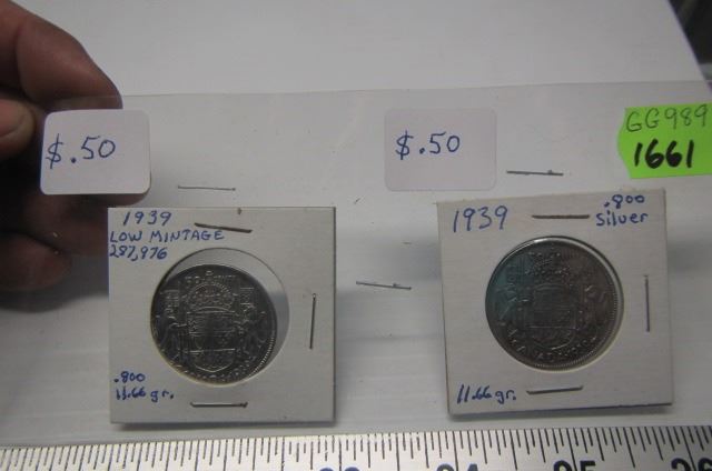 2-1939 CANADIAN 50 CENT PIECES