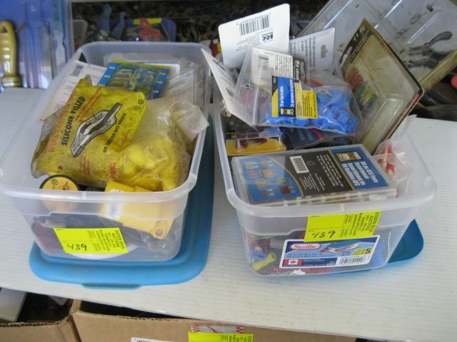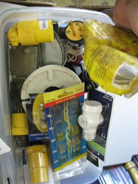 2 BINS OF MISC. - ELECTRICAL FITTINGS, FUSES, ETC.