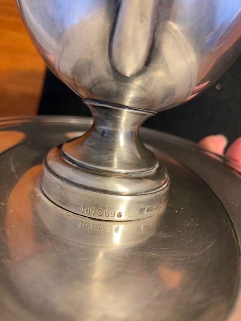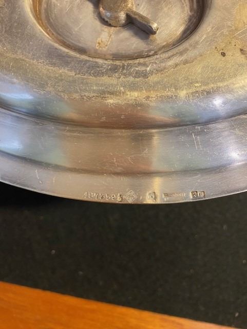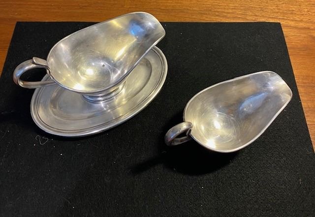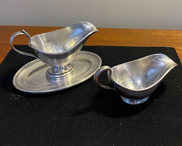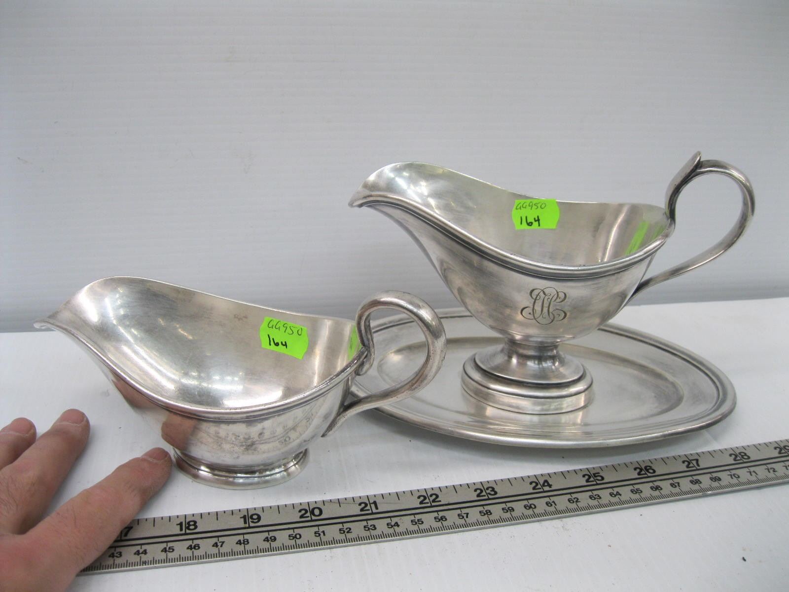 2 'CHRISTOFLE' SILVER PLATE SAUCE BOATS - STAMPED & NUMBERED, 1 W/PLATE ATTACHED