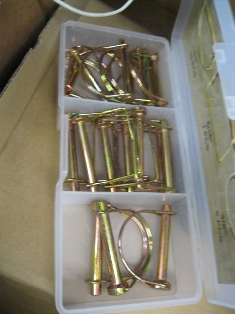 2 FLATS OF MISC. PTO LOCK PINS, TOOLS, BATTERIES, ETC.