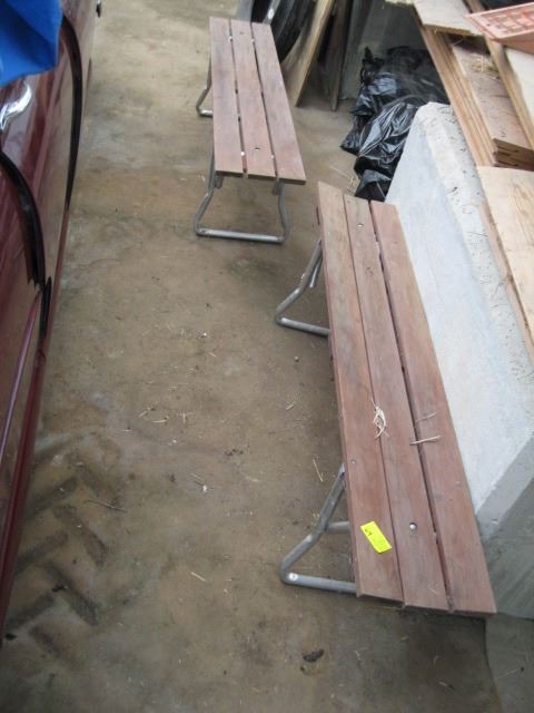 2 FOLDING ALUMINUM W/WOOD TOP BENCHES