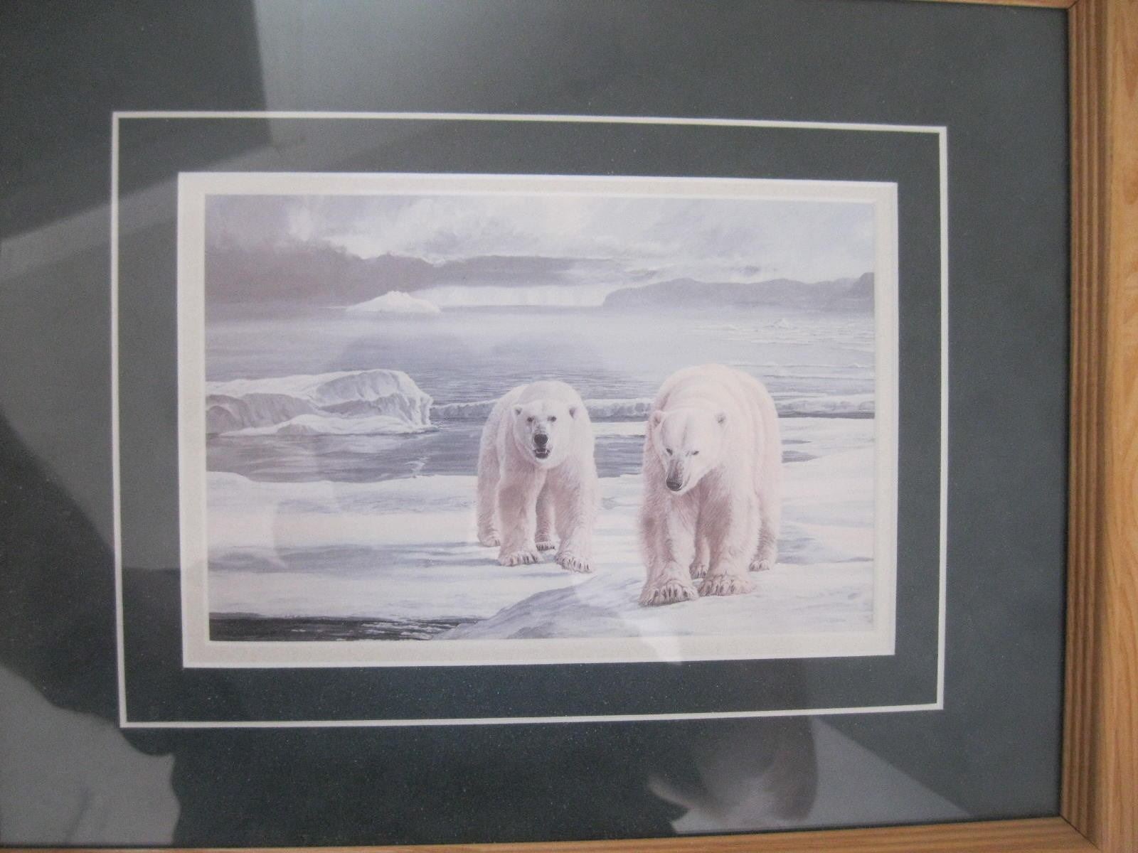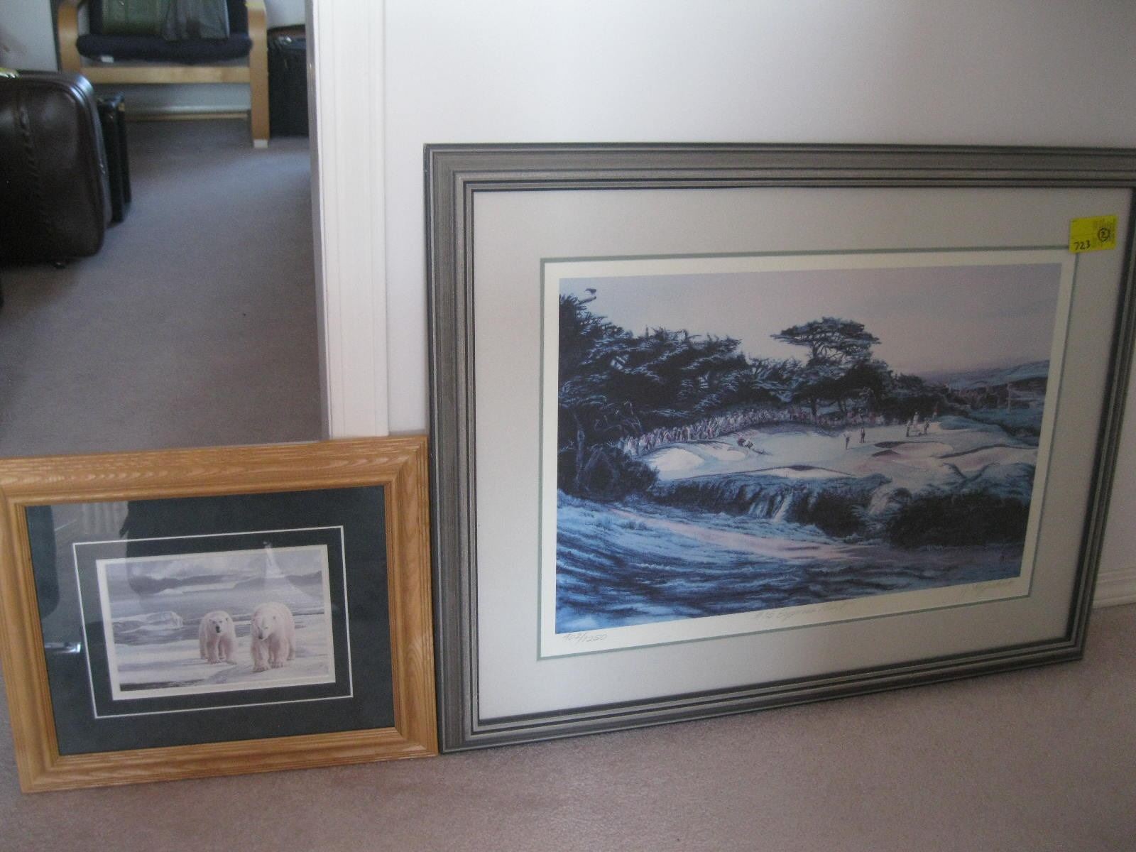 2 FRAMED PRINTS: 1 OF GOLF COURSE NUMBERED & 1 OF POLAR BEARS