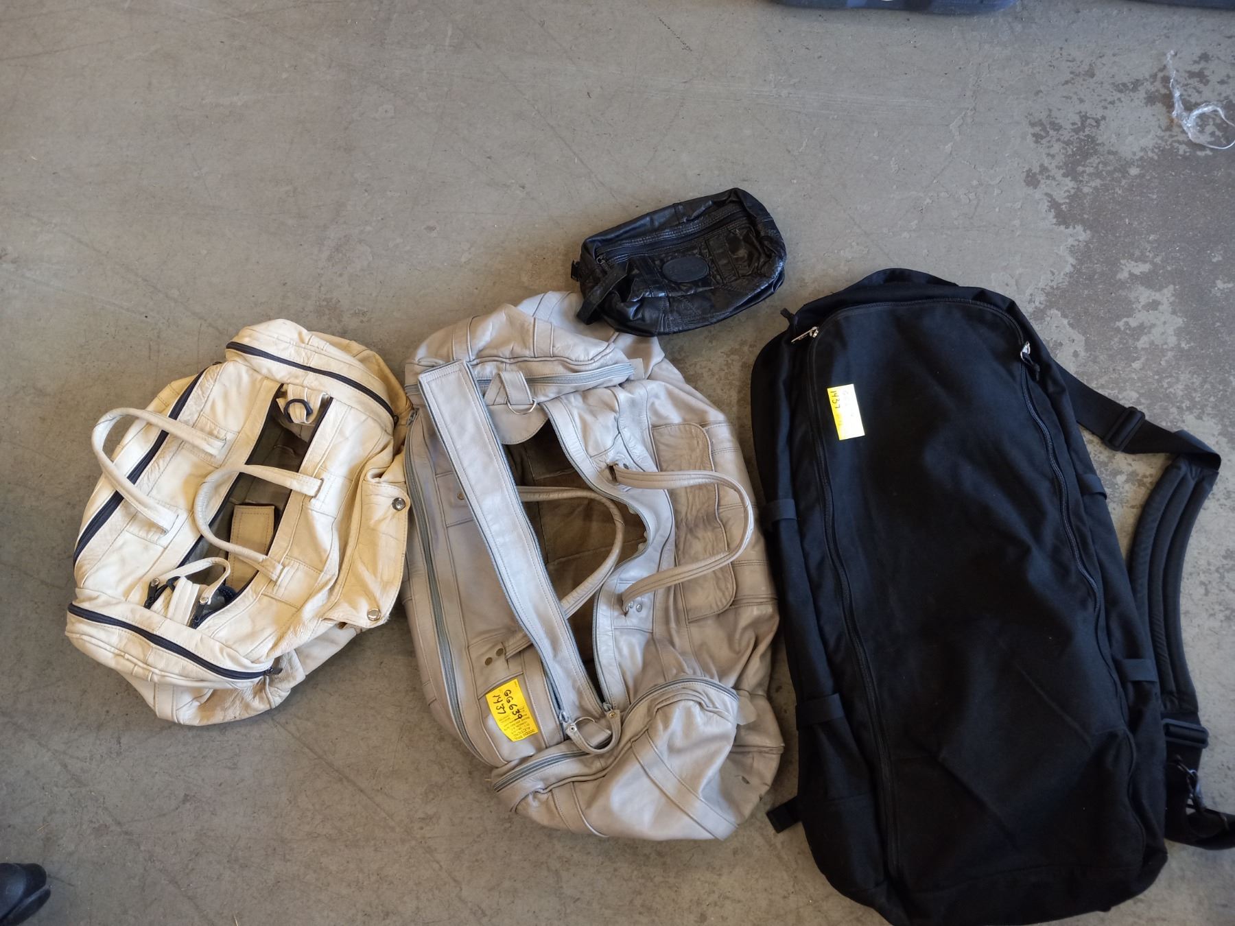 2 LEATHER CARRYALL BAGS, 1 TOILETRY BAG & 1 CARRYALL/BACKPACK COMBO