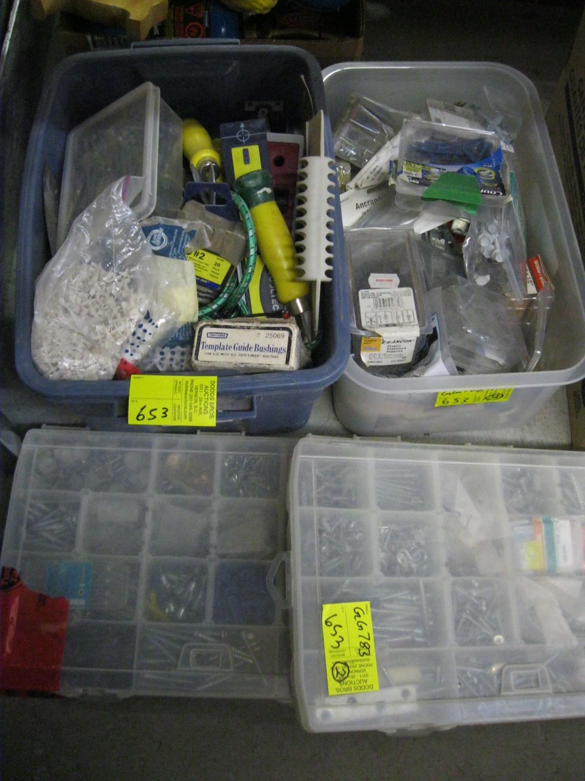 2 SM. TOTES OF MISC. BOLTS & 2 NUT/BOLT ORGANIZERS