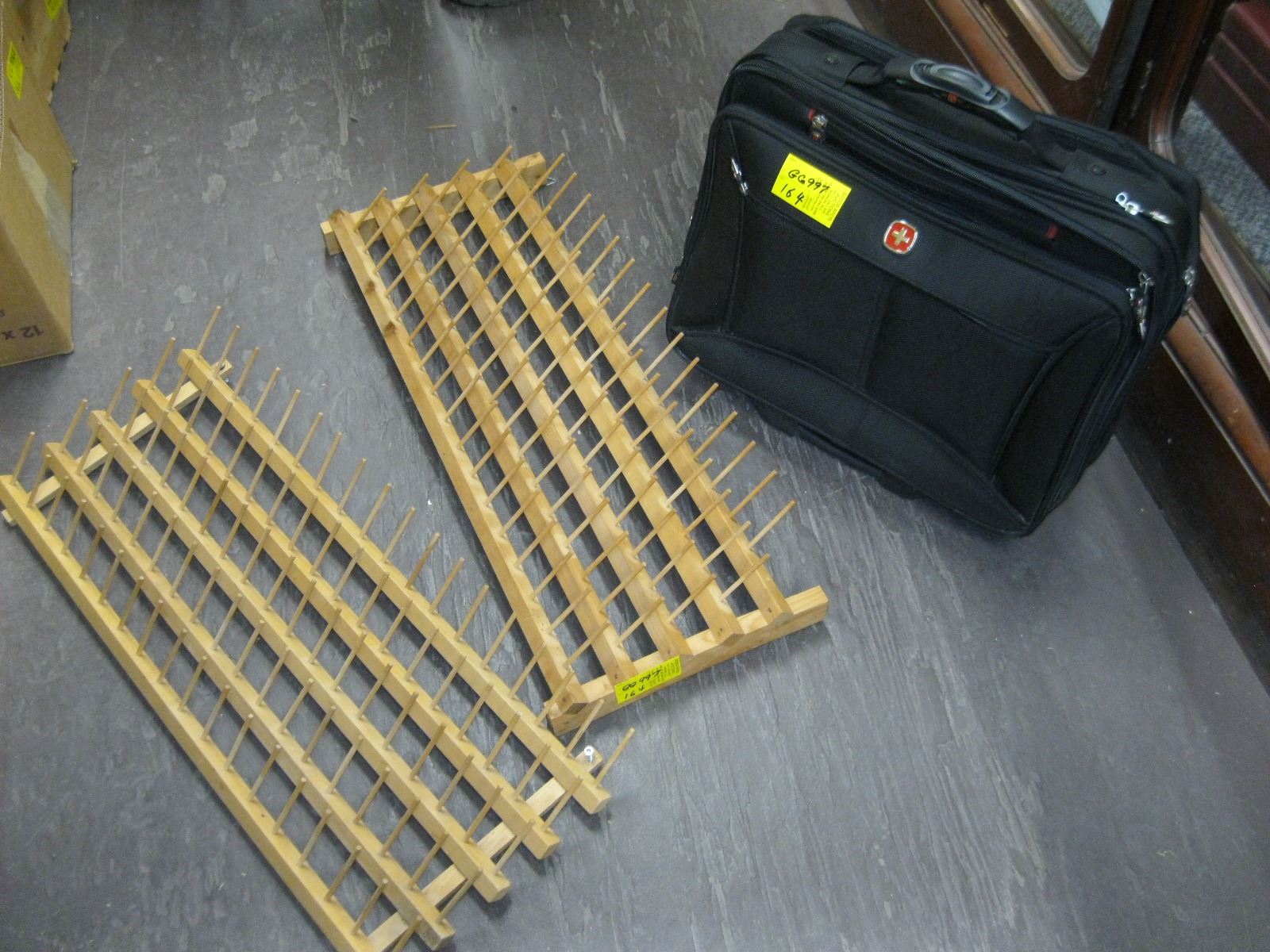 2 SPOOL RACKS & A BLACK BRIEFCASE STYLE ROLLING BAG