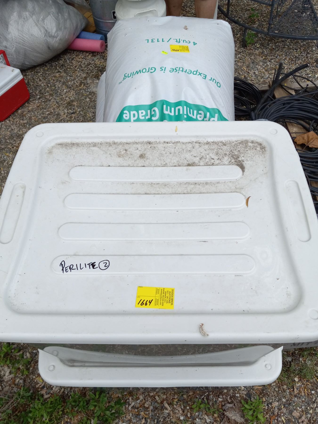 2 TOTES WITH PERILITE (1 FULL, 1 1/2 FULL) & 2 BAGS VERMICULITE