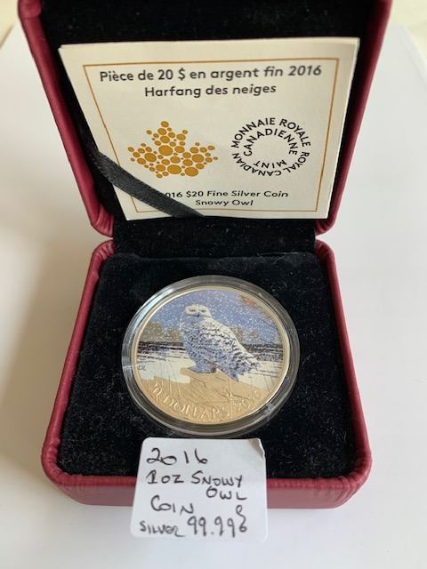 2016 - 1 OZ. SILVER (99.9% - $20 DOLLAR SNOWY OWL COIN - TAX EXEMPT