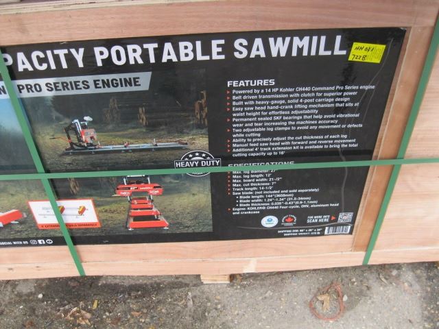 27" CUTTING CAPACITY PORTABLE SAWMILL, NEW IN CRATE