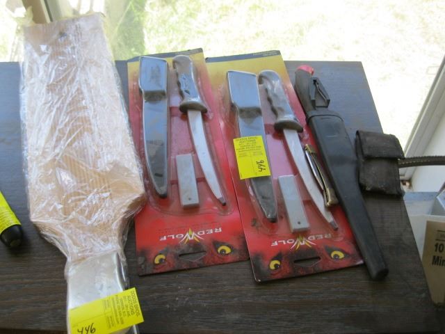 3 - FISH KNIVES, 2 SMALL HOLDING KNIVES & A FILLET BOARD