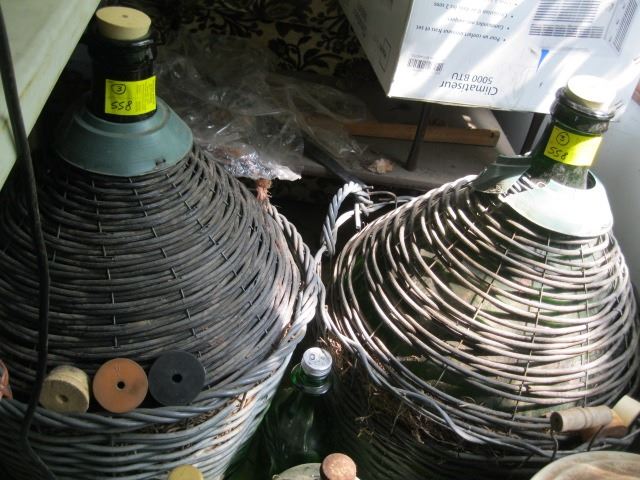 3 LG. WINE CARBOYS W/WICKER LIKE BASKETS