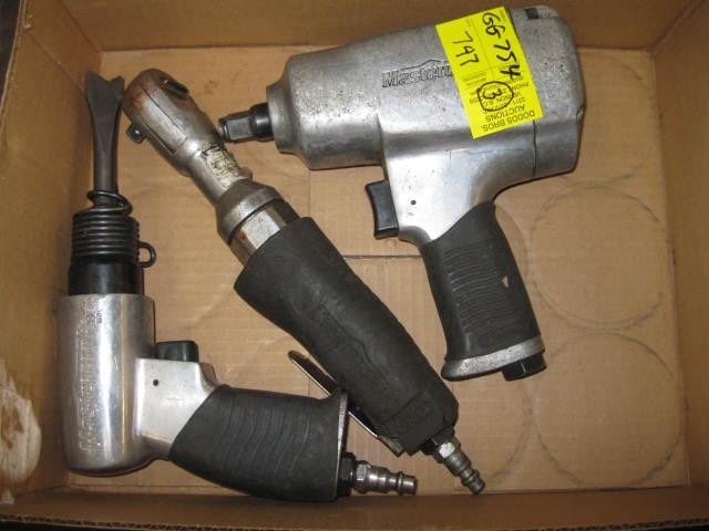 3 MASTERCRAFT AIR TOOLS, IMPACT GUN, RATCHET & CHISEL