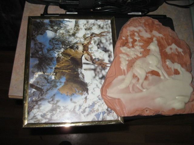 4 DECORATIVE WALL HANGINGS, EAGLE, WOLF, DEER & ELK PICTURES