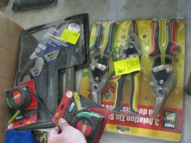 4 PIECE CRESCENT WRENCH SET, 3 PIECE AVIATION TIN SNIP SET & 2 TAPE MEASURES
