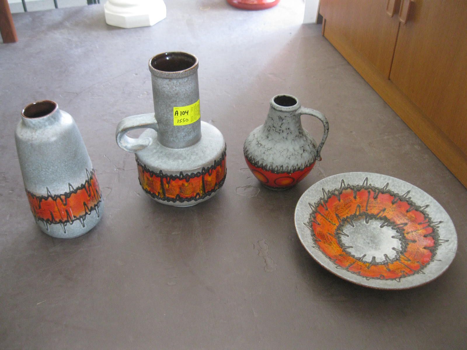 4 PIECE WEST GERMAN MID CENTURY MODERN VASE & PLATE SET