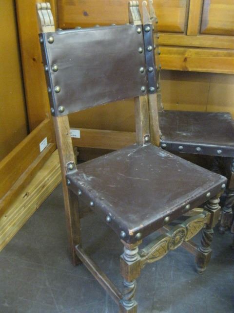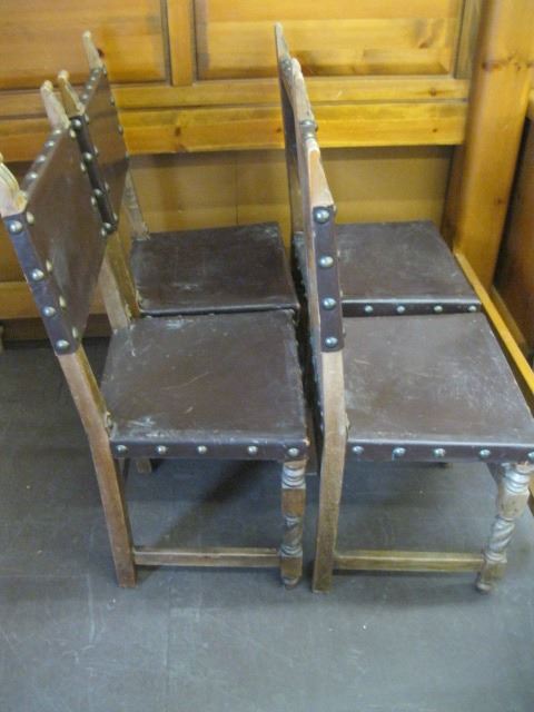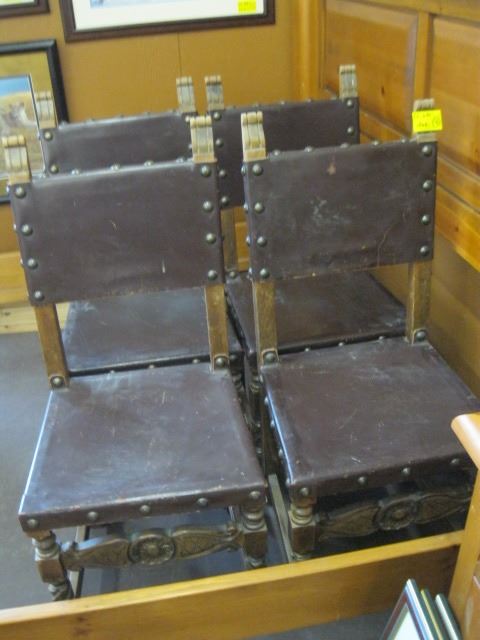 4 WOOD & LEATHER ANTIQUE CHAIRS