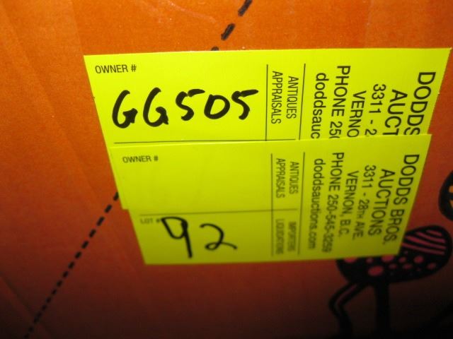 PICK UP FOR LOTS 1607-1716 IS WEDNESDAY (JULY 20) BY APPOINTMENT ONLY AT 7119 GREY CANAL ROAD. THE REST OF THE LOTS ARE TO BE PICKED UP AT THE DODDS SHOWROOM, MON-WED (JULY 18-20), 8:30AM-5PM. IF YOU HAVE ITEMS AT BOTH LOCATIONS, WEDNESDAY IS THE DAY.