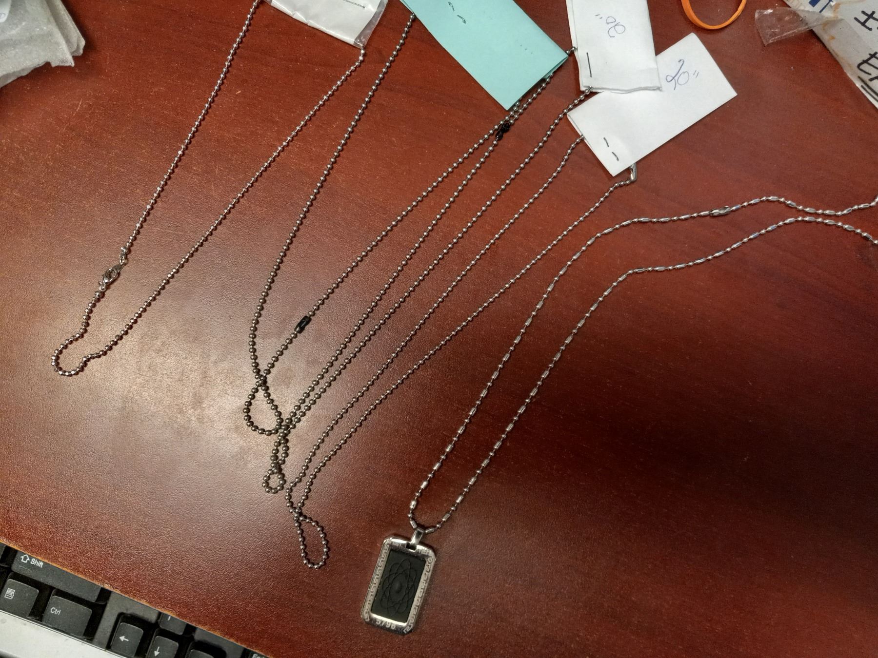 5 FASHION CHAINS, 3-20", 1-16" & 1-26" W/PENDANT