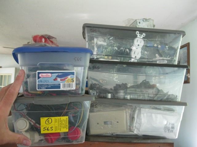 5 PLASTIC CONTAINERS OF ASST. ELECTRICAL ITEMS