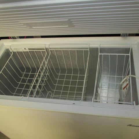 AS IS AMANA WHITE DEEP FREEZE (FREEZES AT THE BOTTEM ONLY)