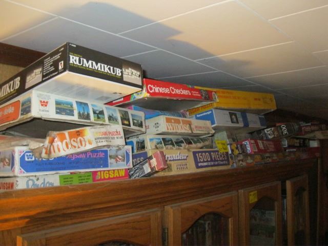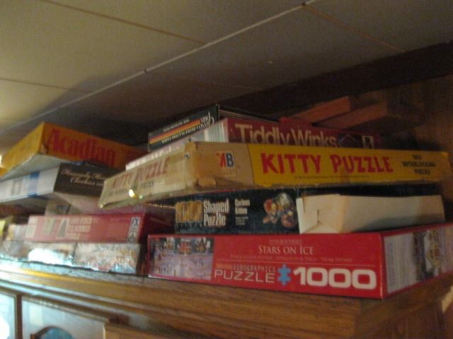 ASST. GAMES & PUZZLES ON TOP OF CHINA CABINET