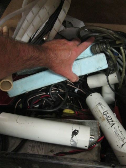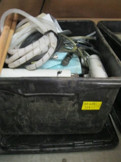 BIN OF ASSORTED CABLE CONNECTORS, ANTENNAE SPLITTER ETC