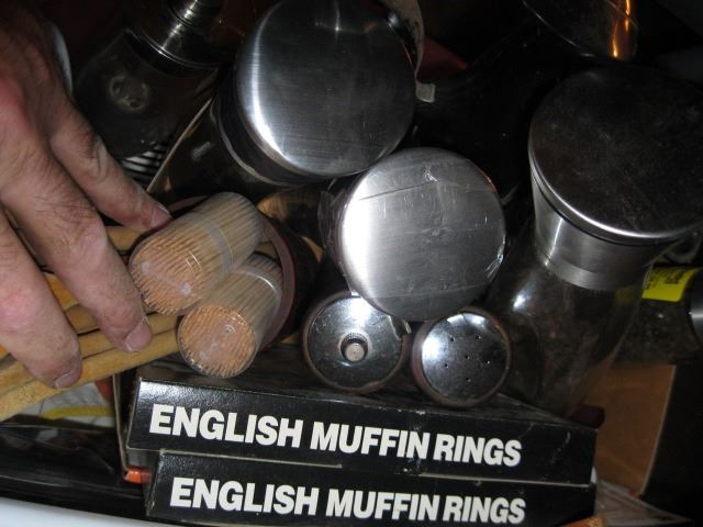BIN OF MISC. SALT & PEPPER SHAKERS, WASHRACKS, ETC.