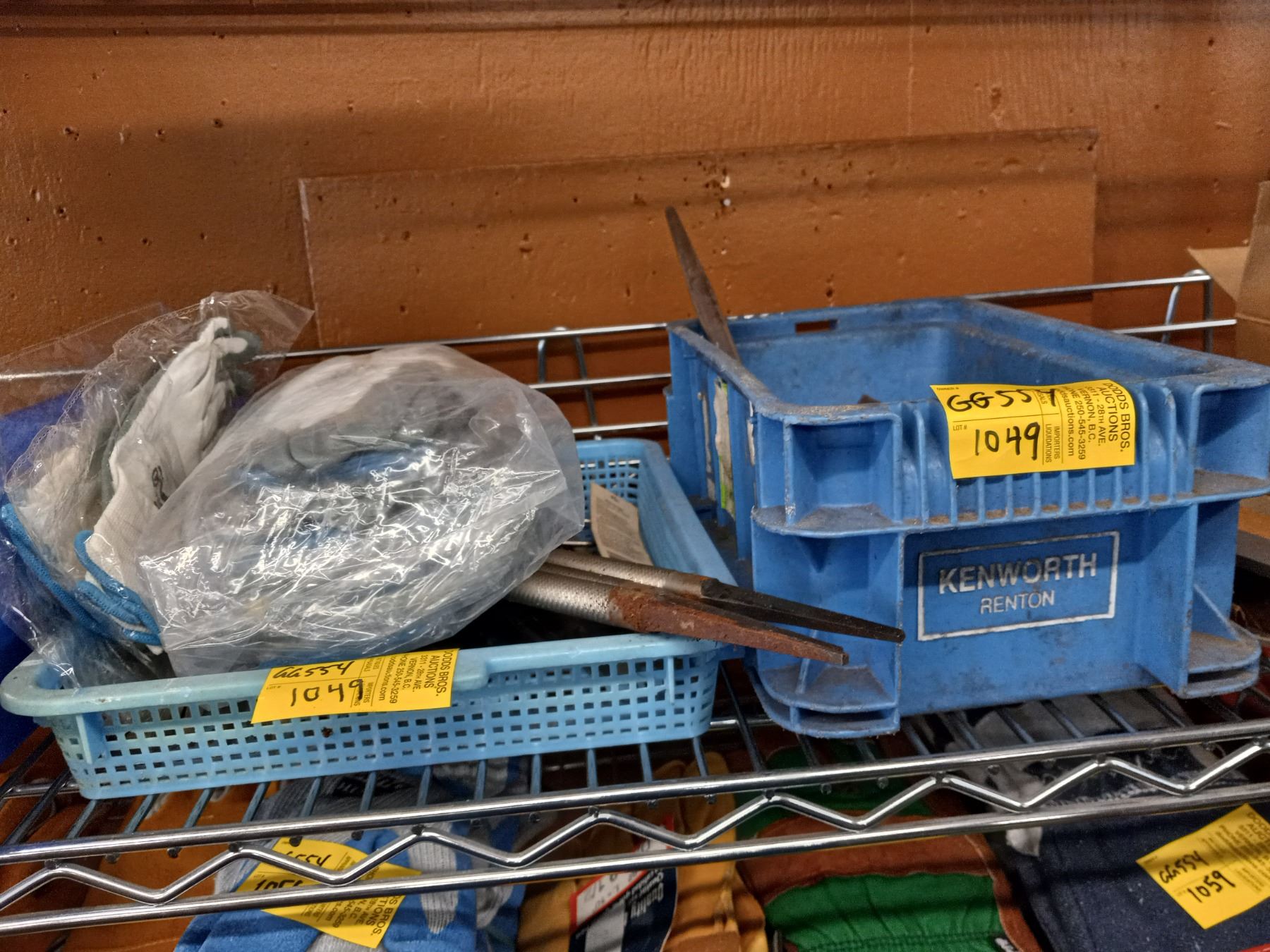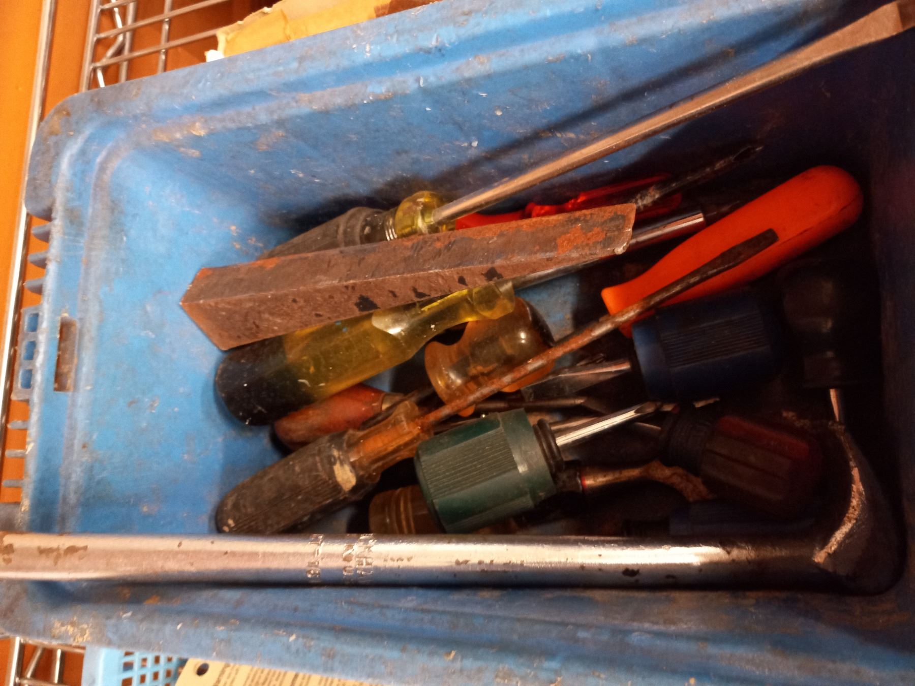 BIN OF SCREW DRIVERS AND BIN OF NEW FILES