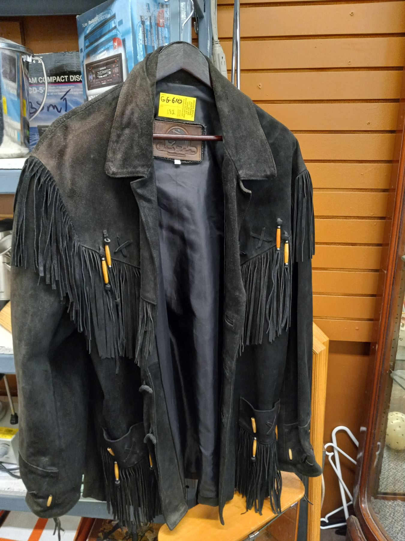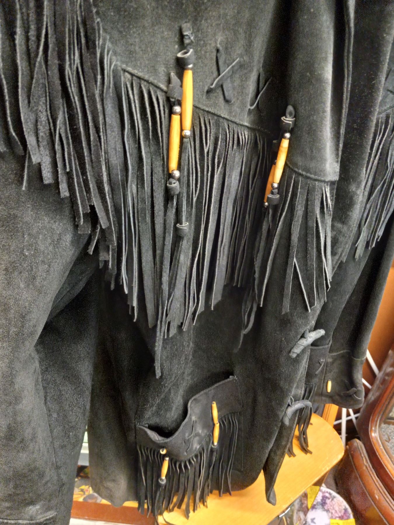 BLACK FRINGED BUCKSKIN COAT - SZ XL