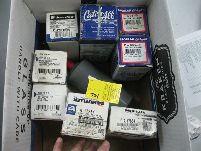 BOX OF 4 SPORLAN CATCH ALL FILTER DRYERS, 3 EMERSON LIQ LUR FILTERS, 2 MUELLER 7/8 BALL VALVES