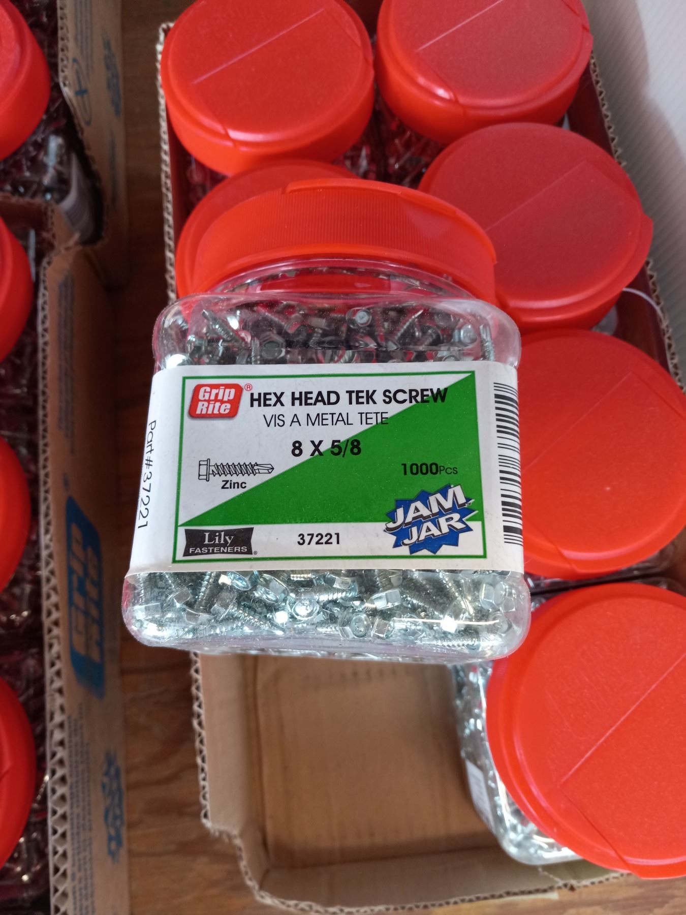 BOX OF 8X5/8 HEX HEAD TEK SCREWS