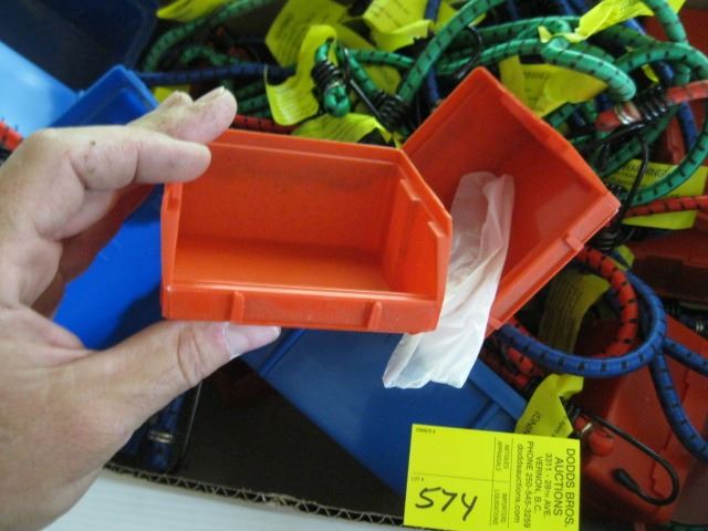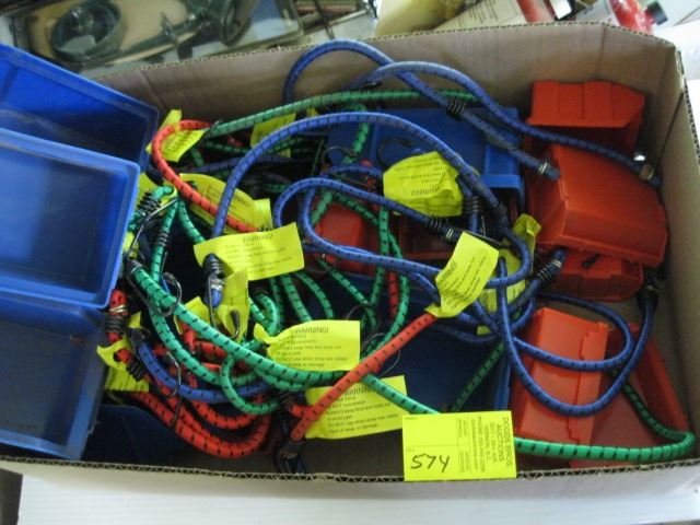 BOX OF MISC. BUNGEE CORDS & PLASTIC HOLDERS
