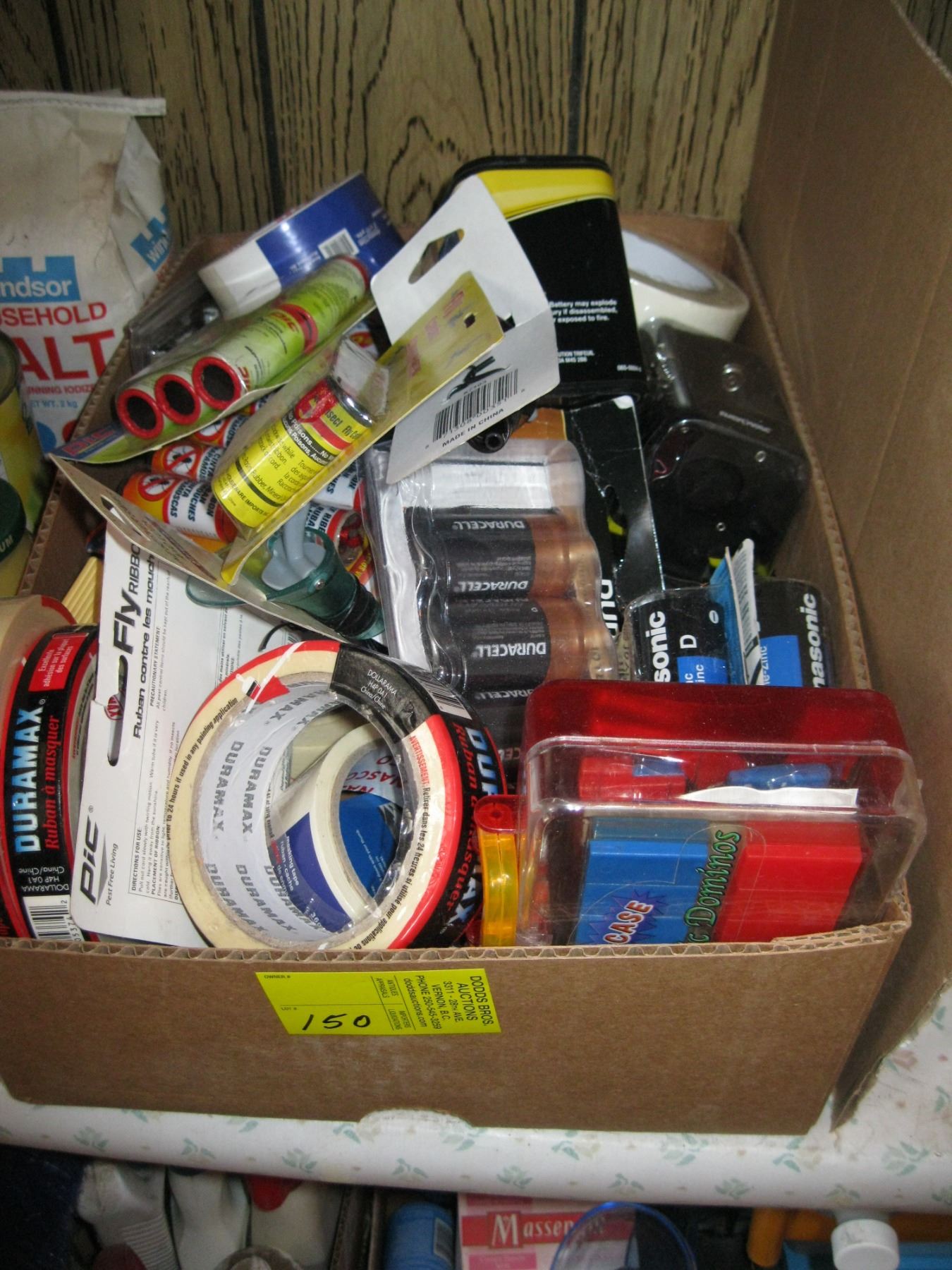 BOX OF MISC. - FLY CATCHERS, BATTERIES, TAPE, ETC.