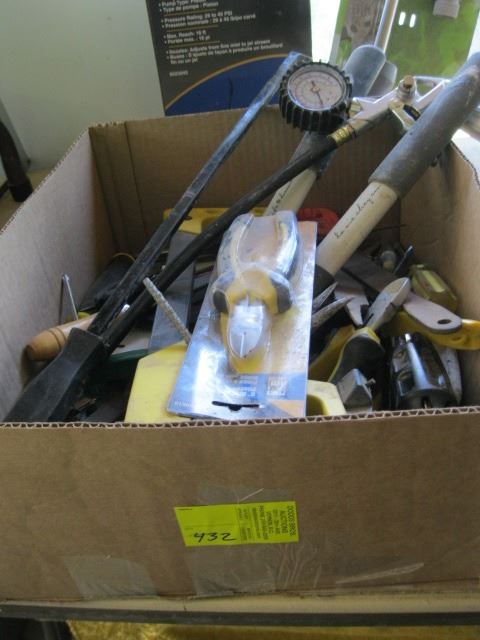 BOX OF MISC. - TOOLS, GRASS CLIPPERS, ETC.