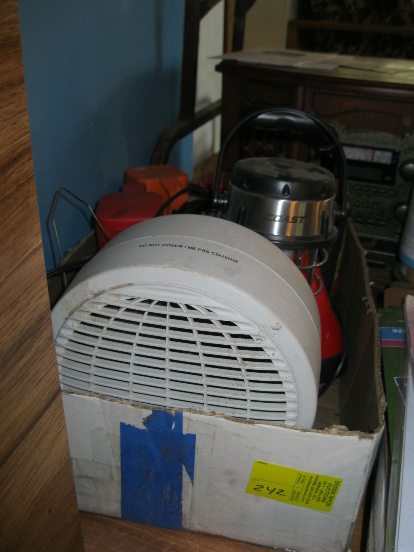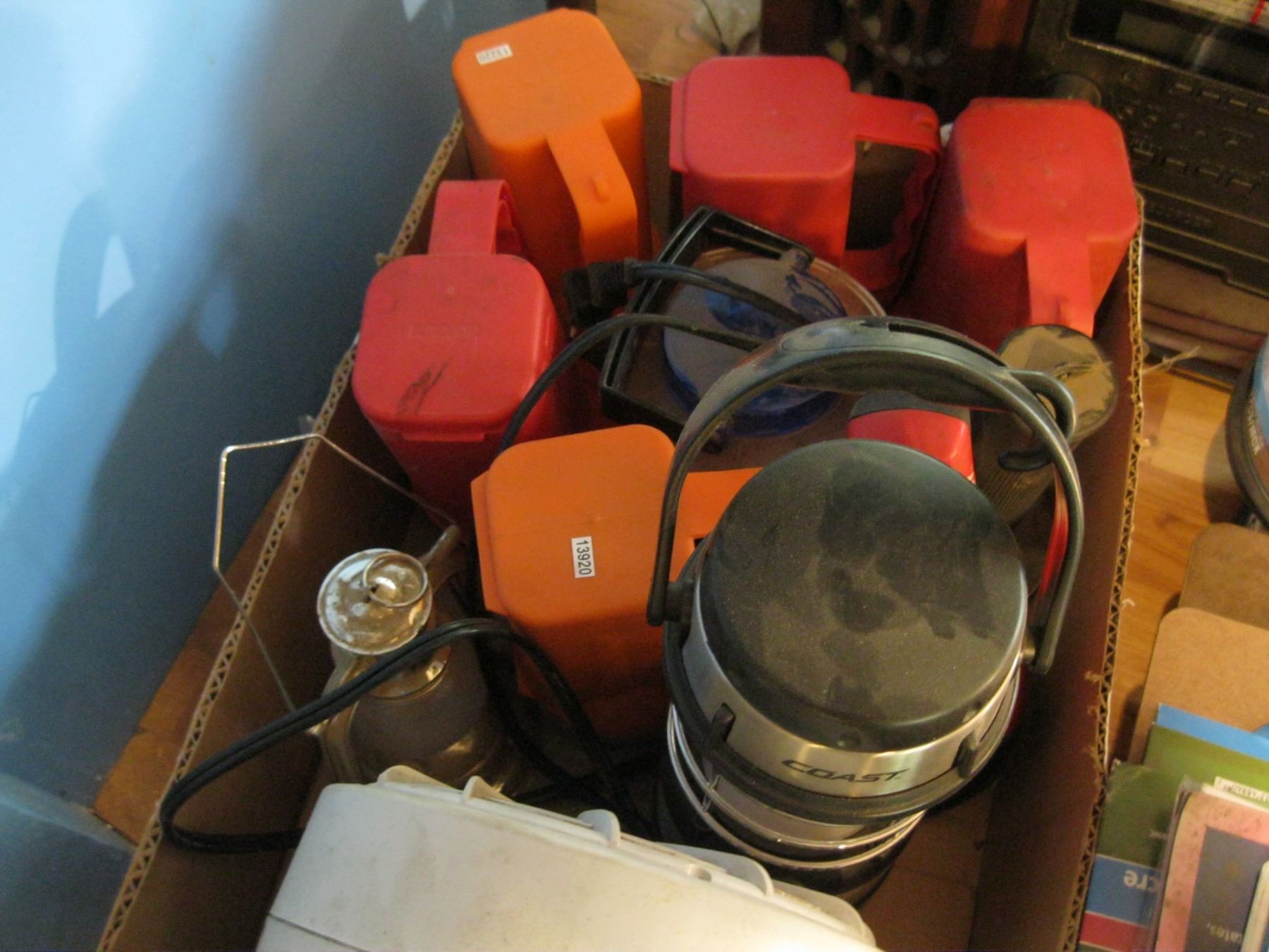 BOX W/MISC. - FLASHLIGHTS, FAN, ETC.