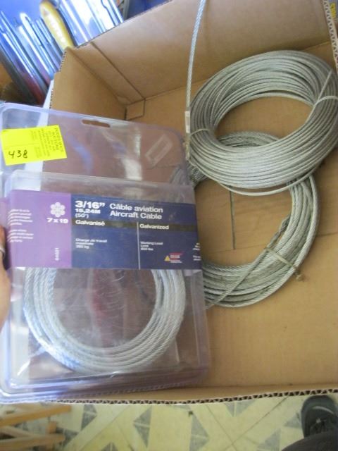 BOX W/NEW AIRCRAFT CABLE, ETC.