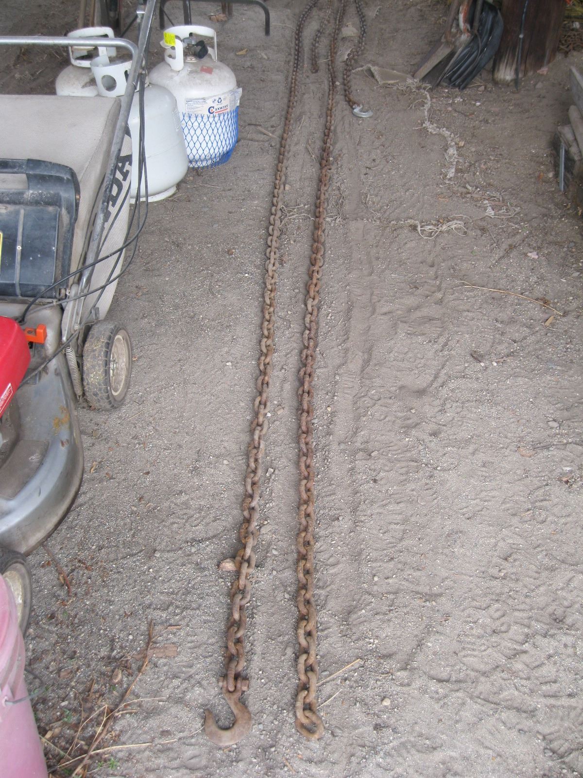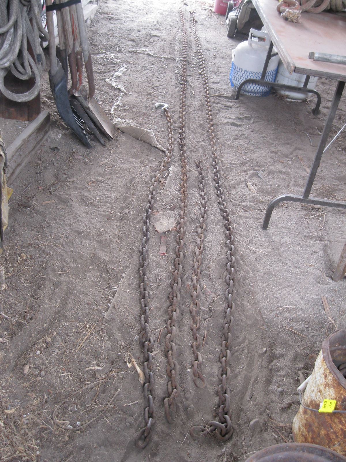 BUCKET OF HEAVY CHAIN W/HOOKS