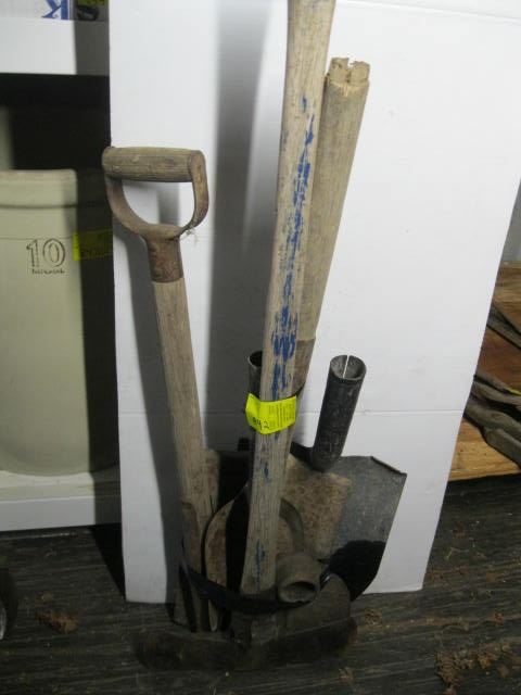 BUNDLE OF MISC: DOUBLE BLADED AXE, SHOVEL, ETC.