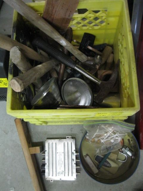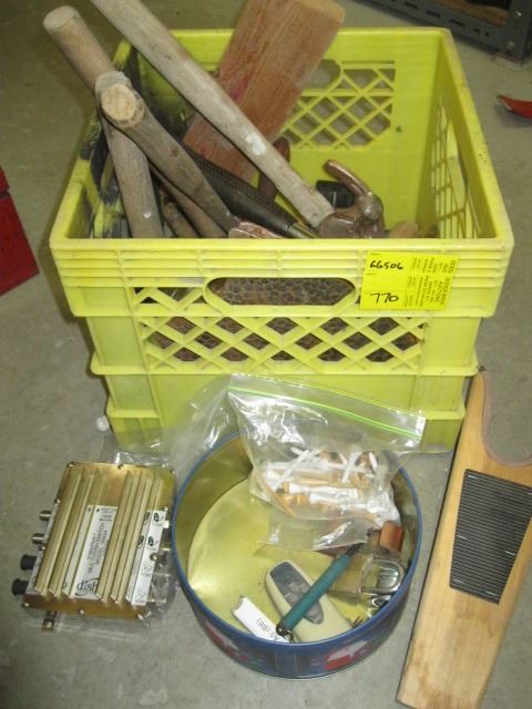 CRATE OF ASSORTED HAMMERS, ETC