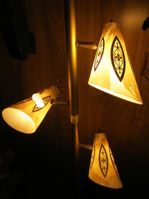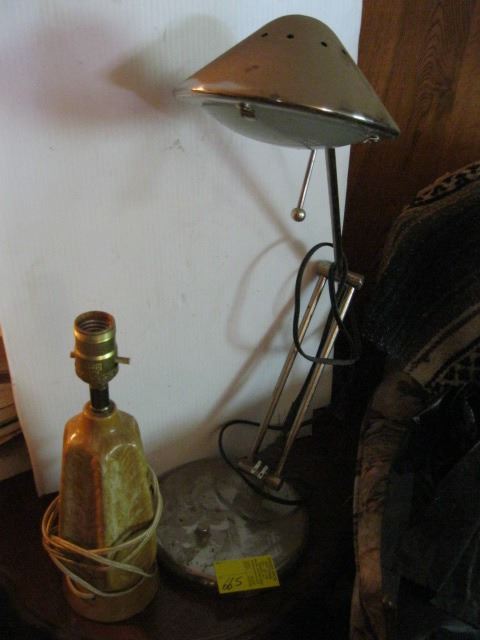 DESK LAMP & TABLE LAMP (NO SHADE), POLE LAMP W/MELTED SHADE