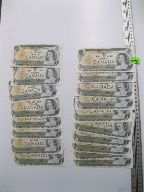 EIGHTEEN CANADIAN 1973 $1 BILLS