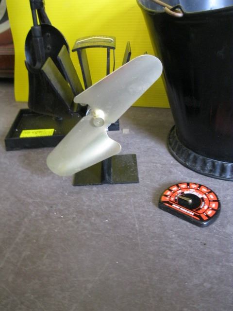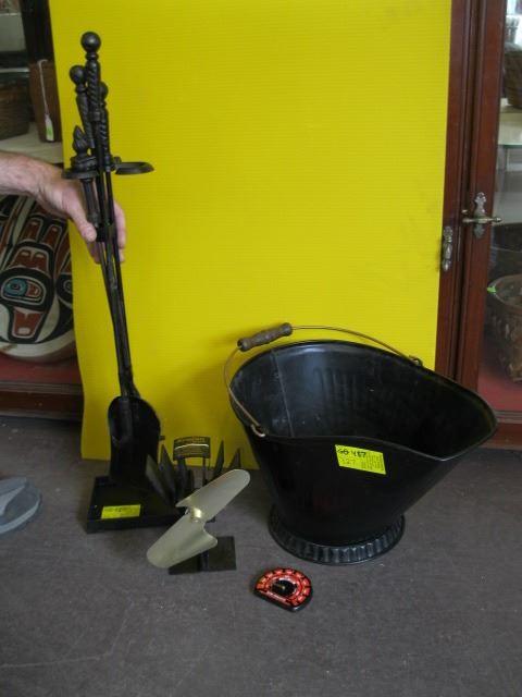 FIREPLACE COMPANION SET, A WOOD HEATER/FAM & A COAL SKUTTLE