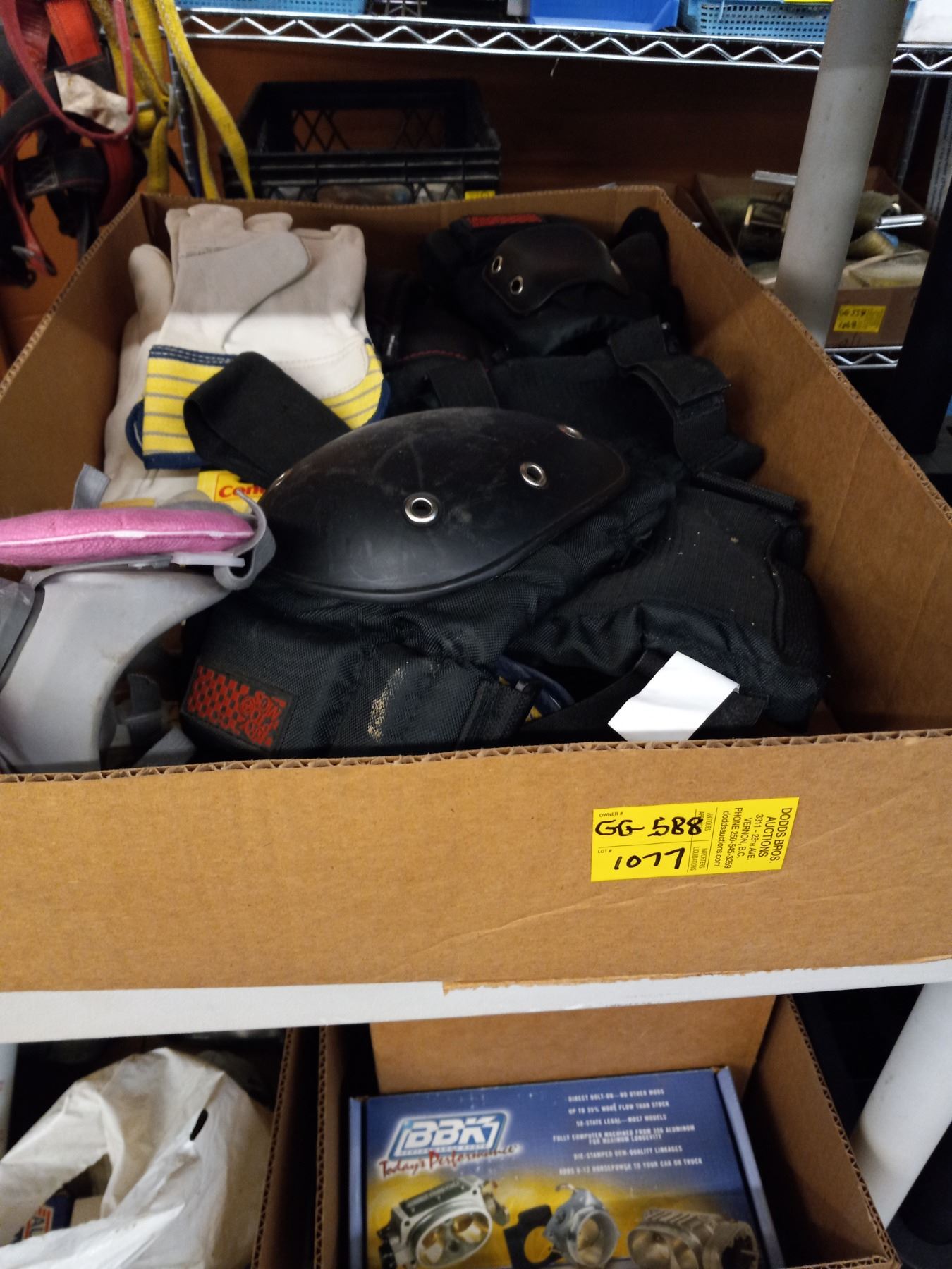 FLAT OF KNEE PADS, NEW GLOVES ETC