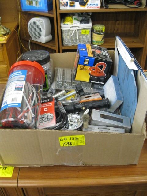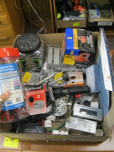 FLAT OF MISC. STAPLES, SUCTION CUP DENT PULLER, ETC.