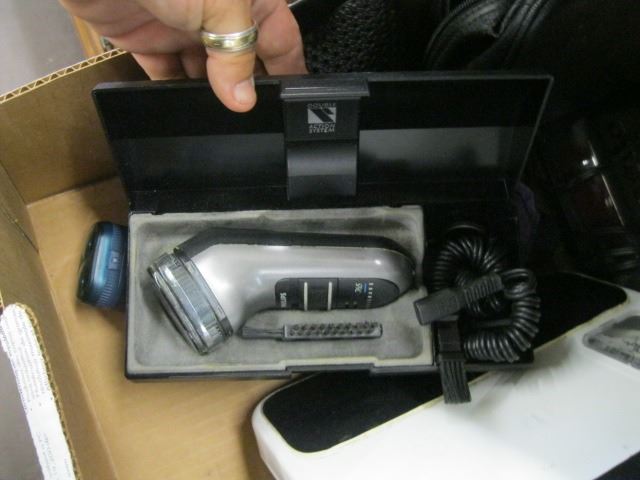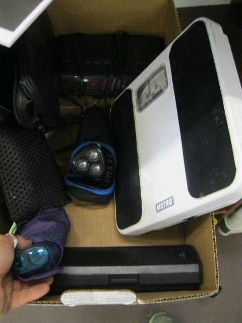 FLAT WITH SCALE, ALARM CLOCK, SHAVER, ETC.