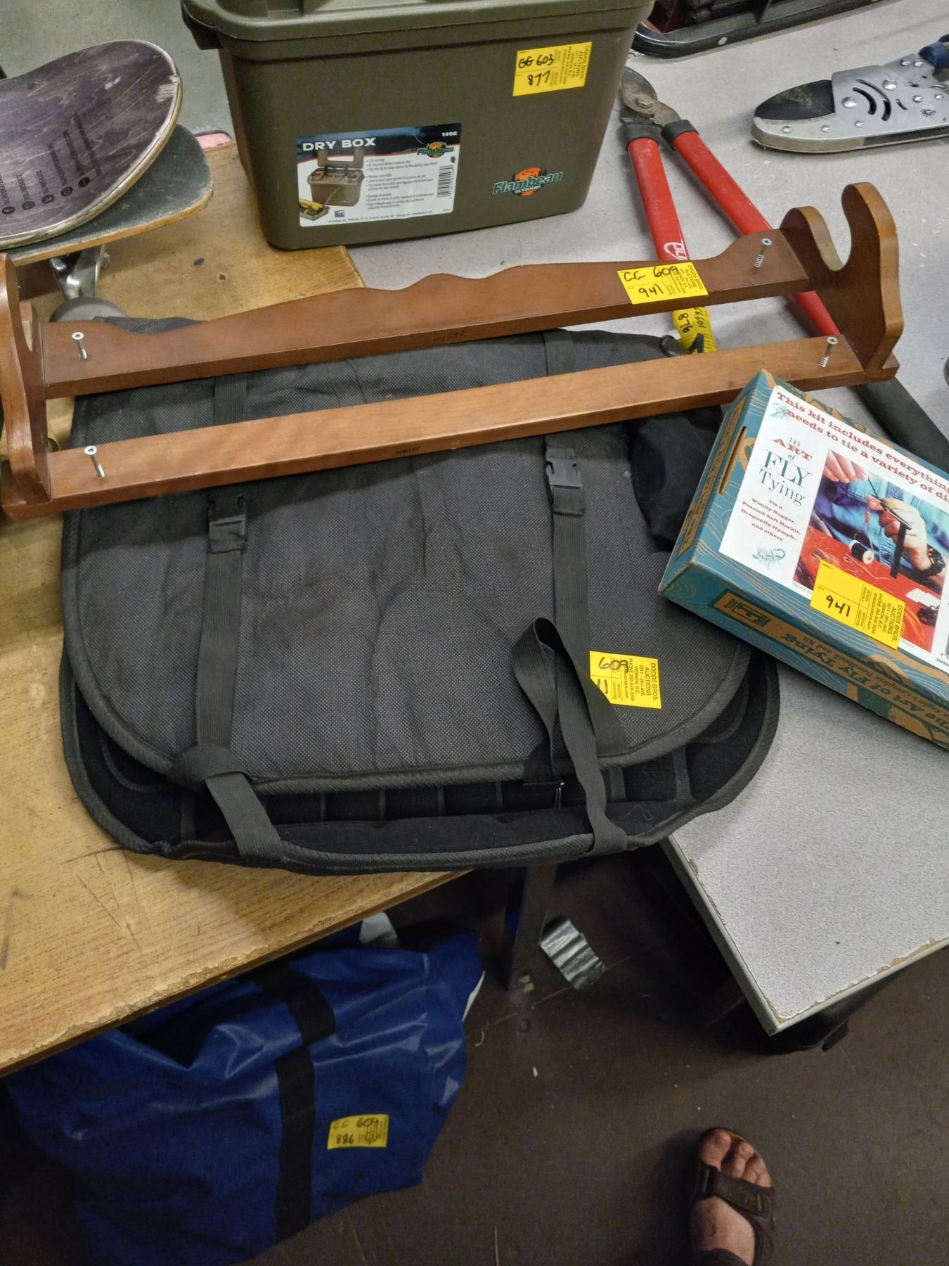 FLY TYING KIT, GUN RACK AND SEAT CUSHION