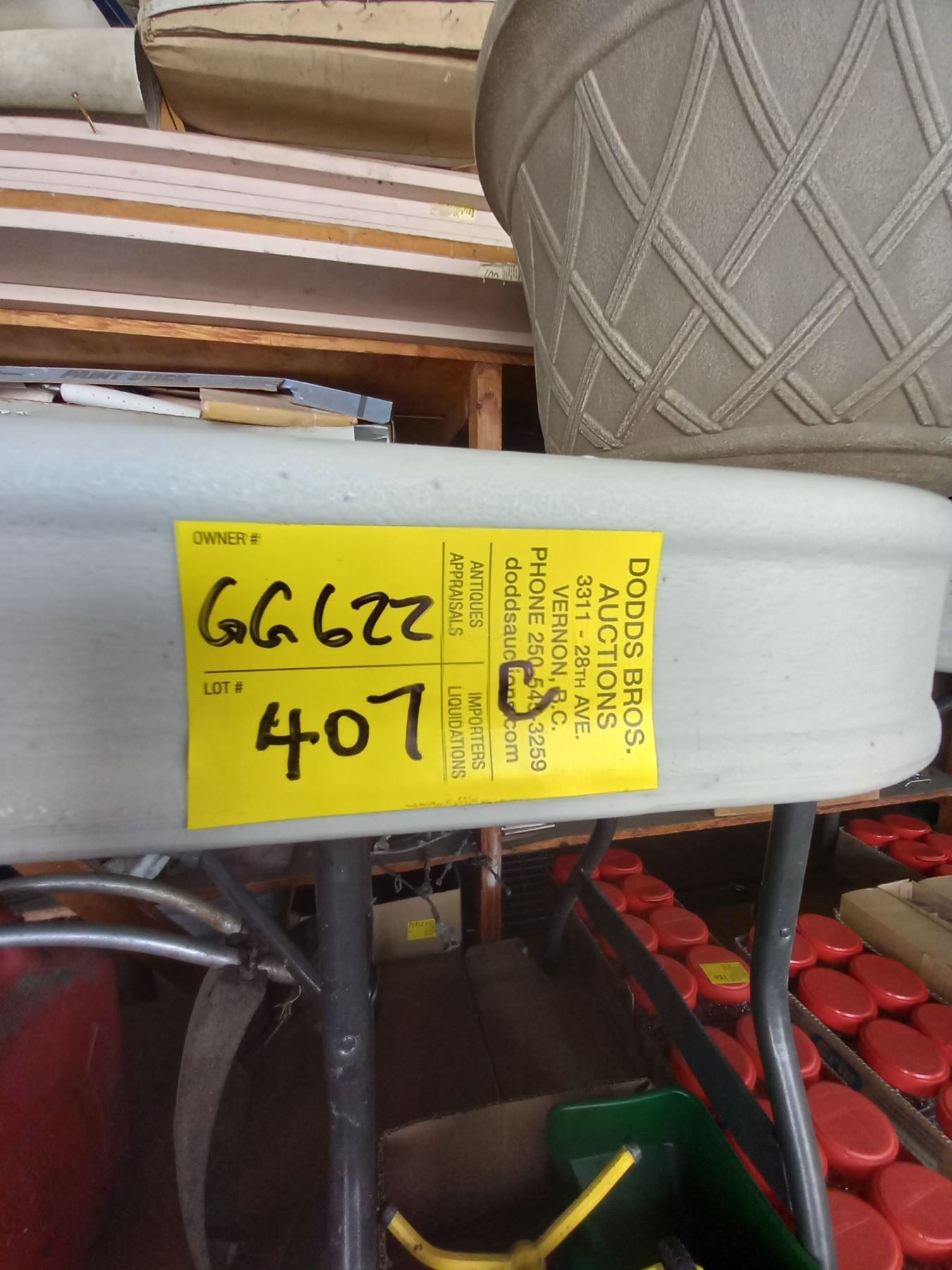 PICK UP FOR LOTS 1607-1716 IS WEDNESDAY (JULY 20) BY APPOINTMENT ONLY AT 7119 GREY CANAL ROAD. THE REST OF THE LOTS ARE TO BE PICKED UP AT THE DODDS SHOWROOM, MON-WED (JULY 18-20), 8:30AM-5PM. IF YOU HAVE ITEMS AT BOTH LOCATIONS, WEDNESDAY IS THE DAY.